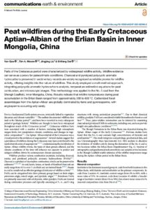 *Gao, Y., Moore, T.A., Liu, J., Dai, S. Peat wildfires during the Early Cretaceous Aptian–Albian of the Erlian Basin in Inner Mongolia, China. Commun Earth Environ 6, 987 (2025). https://doi.org/10.1038/s43247-025-02946-2